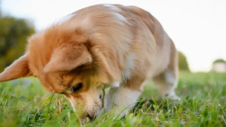 Corgis, being low to the ground, gives them a chance to gobble up garbage
