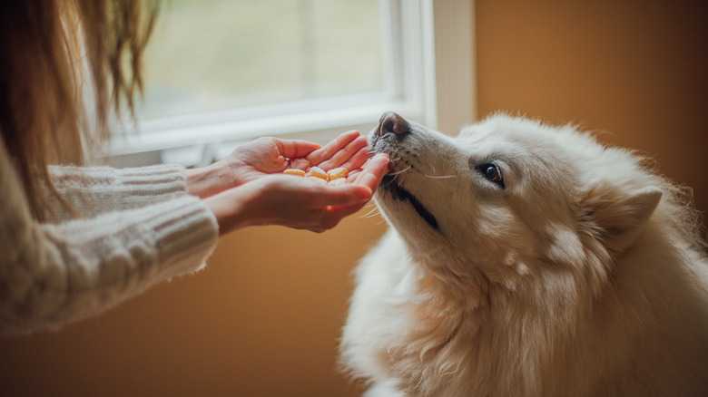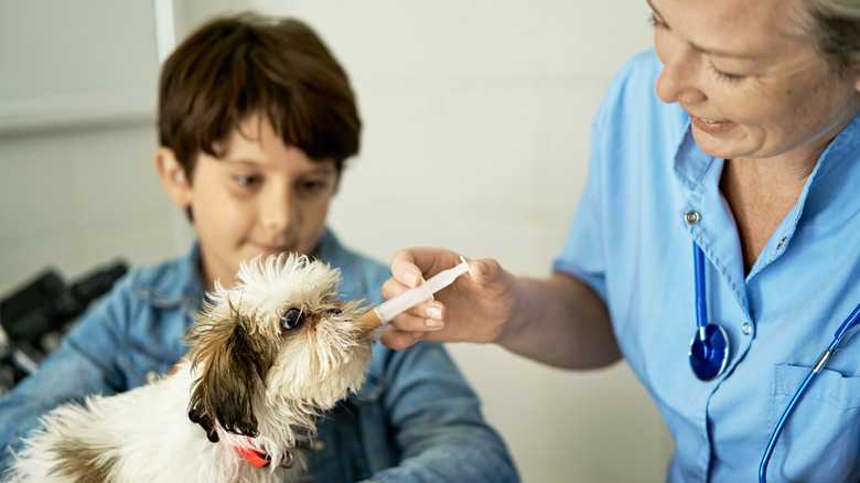 When mixing liquid medicine with something like peanut butter, veterinarian Dr. Shannon Barrett suggests using a small amount, per Rover. If your dog isn't fooled by the flavor, and they spit it out, resist the urge to give them more of the medicine. "You have no idea how much of it they actually ingested vs. how much they spit out," Dr. Barrett says. "Therefore giving them more may result in an overdose."